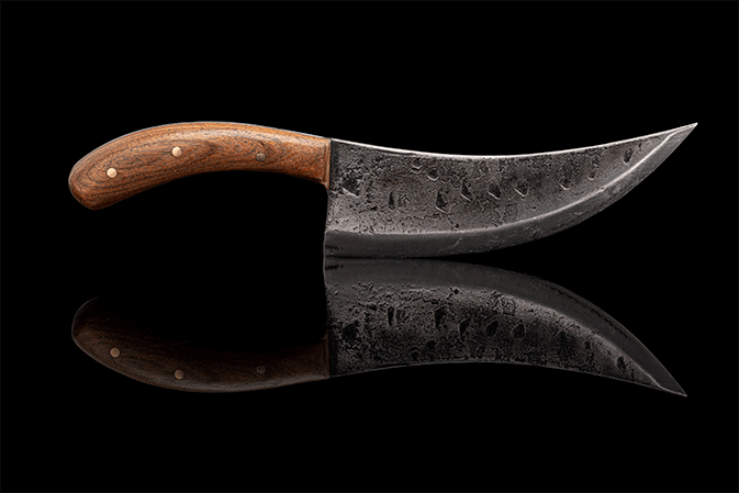 Hermosa y elegante pieza hecha 100% a mano con acero 5160 al alto carbono. Cachas de mesquite, remaches de bronce y funda hecha de cuero a medida, Un filetero de campo, hoja gruesa, para cortes contundentes, deshuesador.